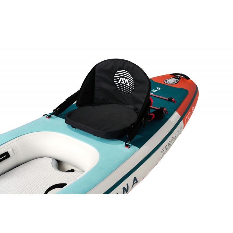 Το Aqua Marina Cascade 340cm (28402) είναι ένα πραγματικά πολυμορφικό 3-σε-1 υβριδικό φουσκωτό που συνδυάζει SUP + sit-on-top kayak + sit-in kayak σε ένα σκάφος. Με drop-stitch κατασκευή και Double Chamber Tech (διπλός θάλαμος), προσφέρει εντυπωσιακή ακαμψία, κορυφαία σταθερότητα και μεγάλο ωφέλιμο φορτίο, ενώ ο μοναδικός σχεδιασμός με αδιάβροχο κάλυμμα σας επιτρέπει να το μετατρέπετε εύκολα από sit-on-top σε sit-in για πιο «κλειστή» θέση και γρηγορότερες διαδρομές.